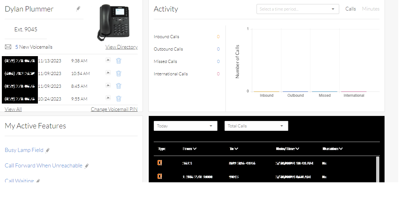 13. From here, you'll be able to see the users voicemails and call log.
