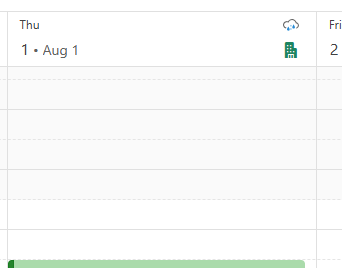 Once setup, the work hours will be reflected on a user's calendar (via a slight color differentiation for the hours) and the location will be listed as a symbol at the top of each day. See example below
