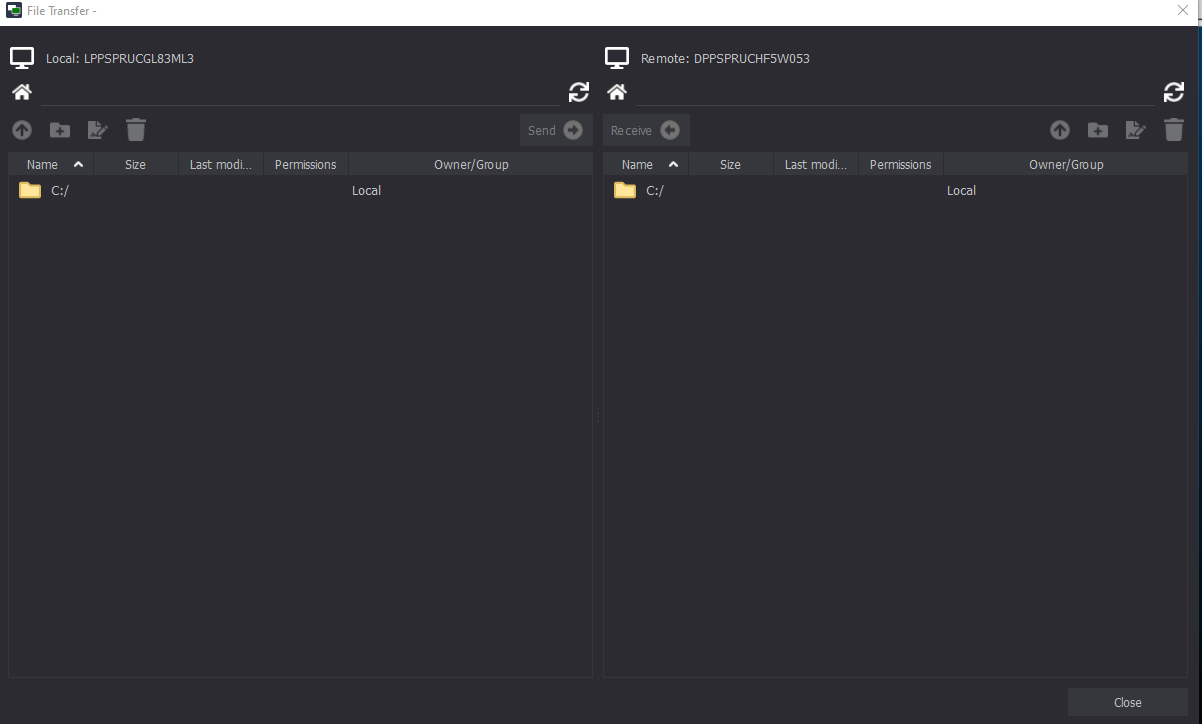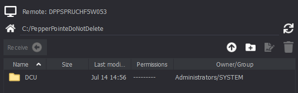 3. On the remote computer's filing system, select the "Recieve" button to download the selected files/folders.