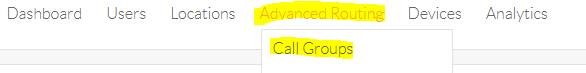 To create a call group, you will hover over Advanced Routing and click on Call Groups.