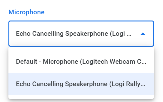 3. On the menu that appears, under the drop down for Microphone, select the Rally.