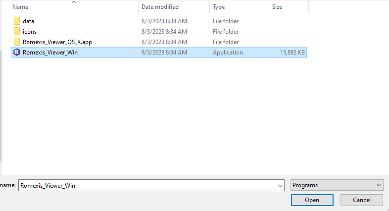 This will open your Program Files directory which we copied Romexis Viewer into earlier. Click on the Romexis Viewer app in the Romexis Viewer folder we created earlier.