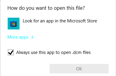 Right click on your DCM file, then click on Open With. From the menu that appears, click on More Apps.
