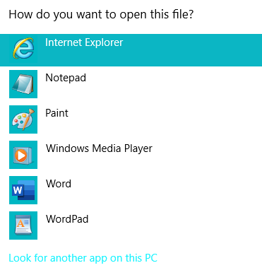 Then, at the bottom of the list, click on Look for another app on this PC.