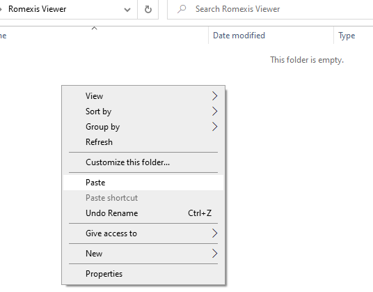 Title this created folder Romexis Viewer, then click into it. Right click, then paste.