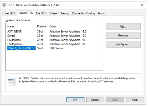 3. Highlight "PDATA_SQLEXPRESS" and click "Configure"