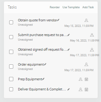 - You will click the Use Template to assign tasks to the ticket.