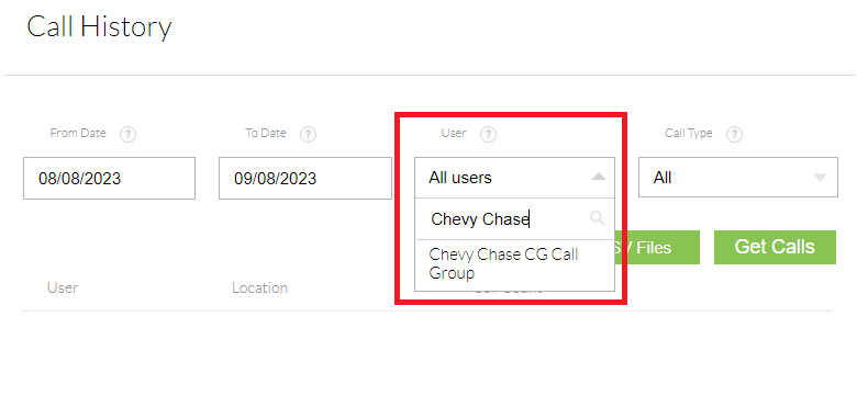 If you would like to pull history from the entire practice, enter the practice name and select its "Call Group"