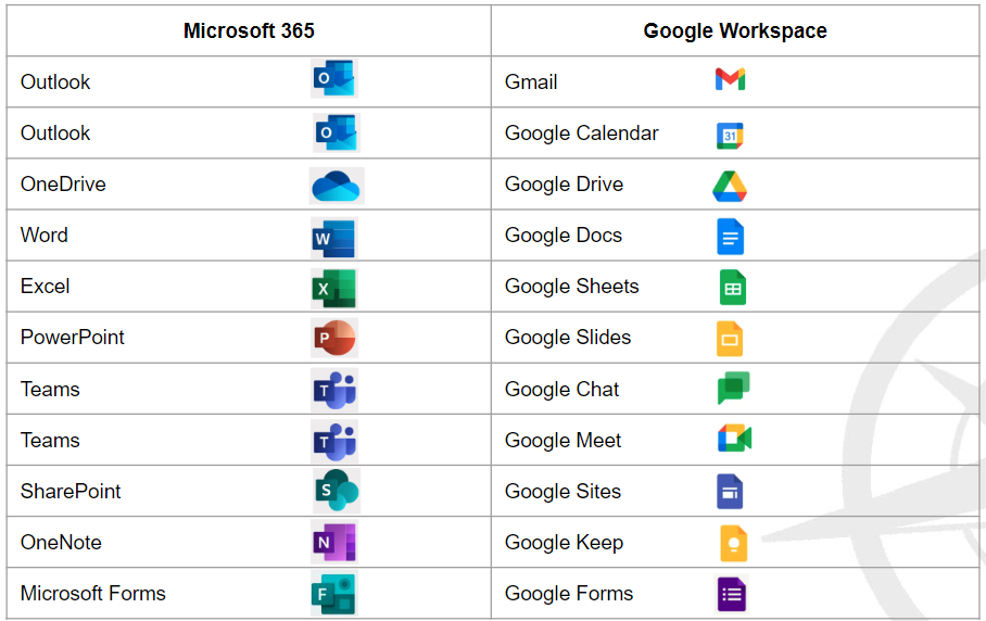 GOOGLE WORKSPACE VS. MICROSOFT 365 APPLICATION EQUIVALENTS