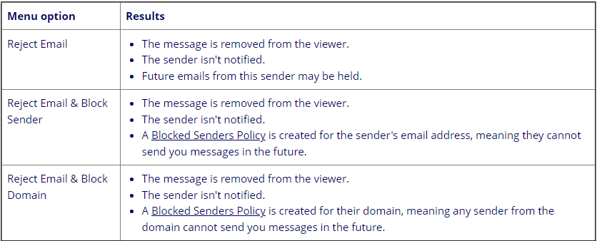 Rejecting an Email Message