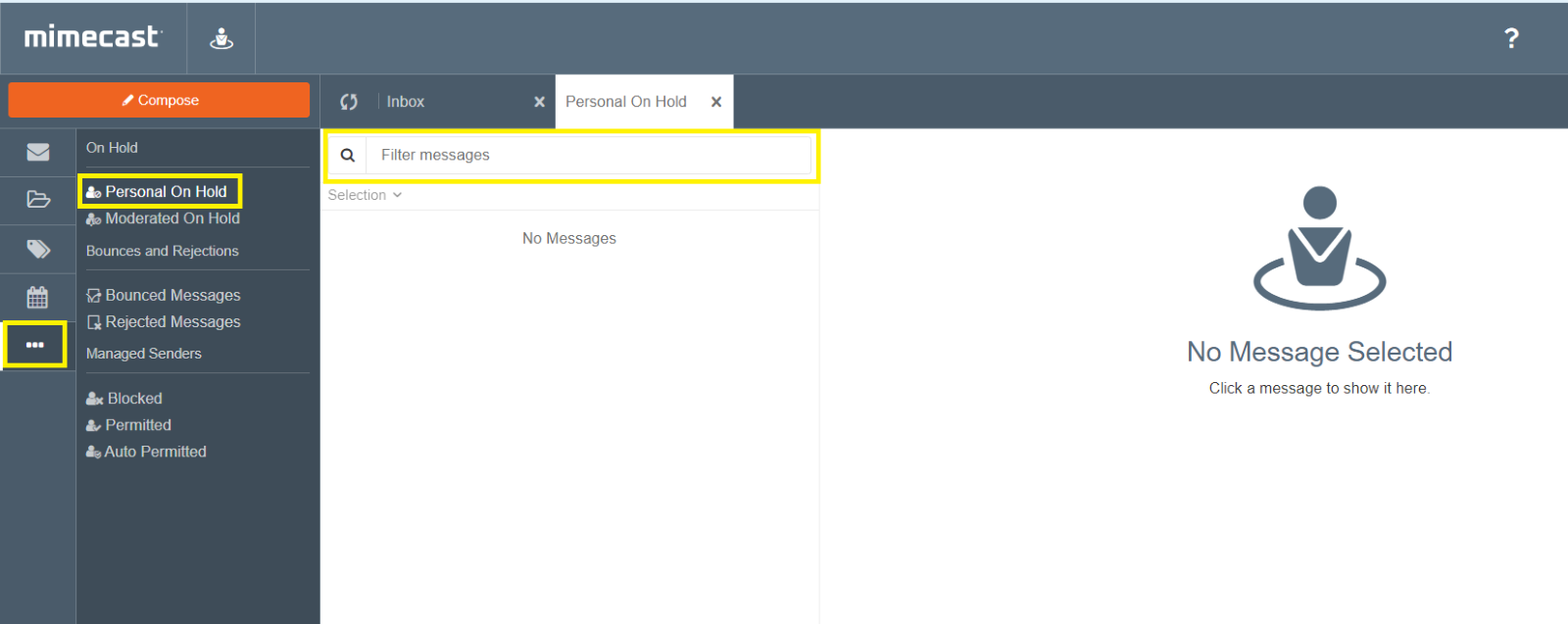 This guide shows you how to manage on hold queues in the Mimecast Personal Portal. Messages/Emails can be released or rejected either individually or in bulk.